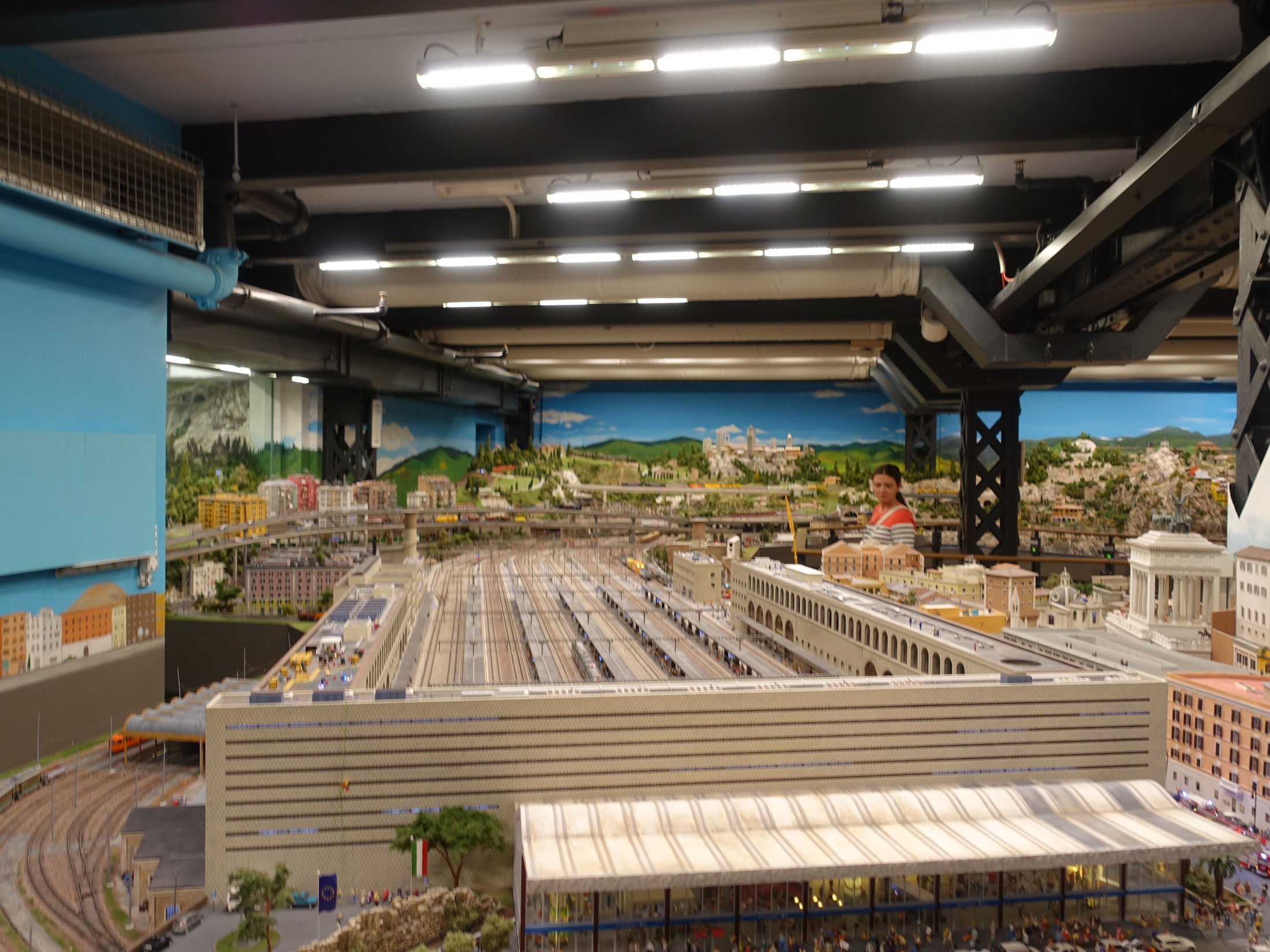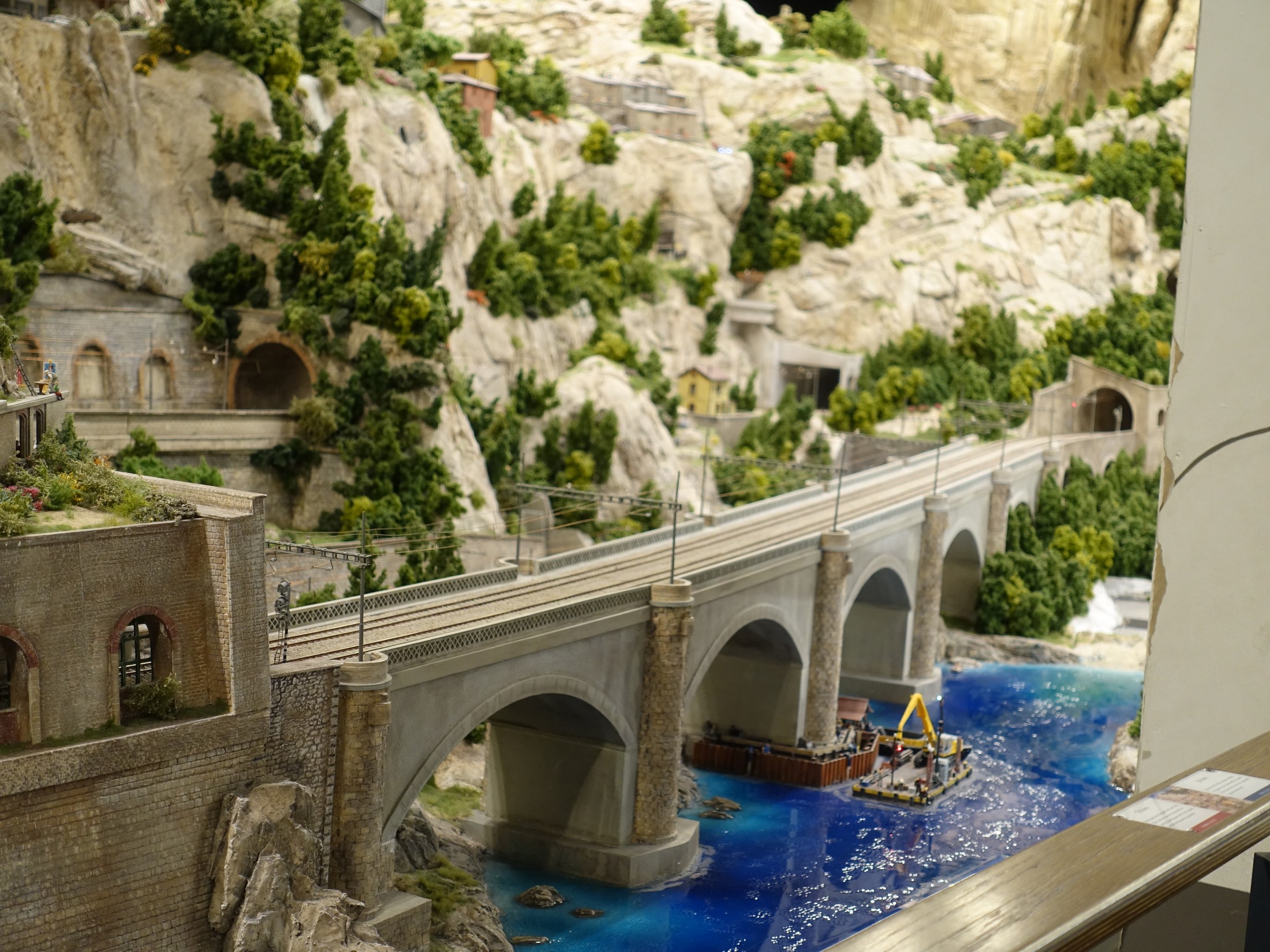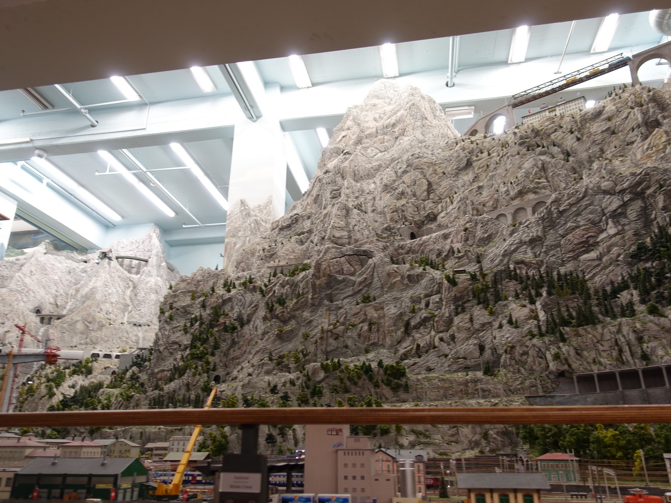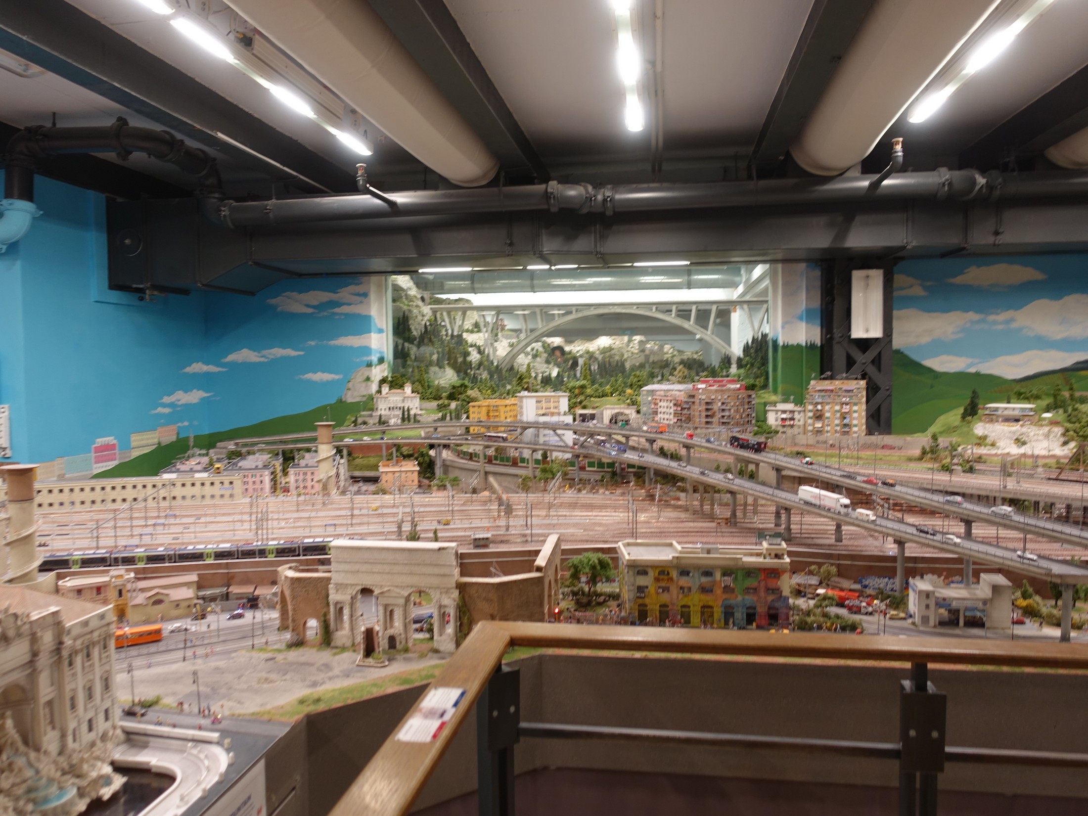 Co se týká modelové železnice, tak ta je bohužel v provozu jen v určité časy a nám to bohužel nevyšlo příliš dobře (čekali by jsme přes hodinu), tak jsme ji v provozu neviděli. Ale i tak je možné si modelovou železnici prohlédnout za skleněnými zdmi. Jedná se o modely ve větším měřítku než je H0, ale netroufám si odhadnout, co to bylo za měřítko. I proto modelová železnice působila trochu zvláštním dojmem a modely nebyly tak propracované, řekl bych, že to je spíše pro zábavu dětí, než dospělých modelářů.