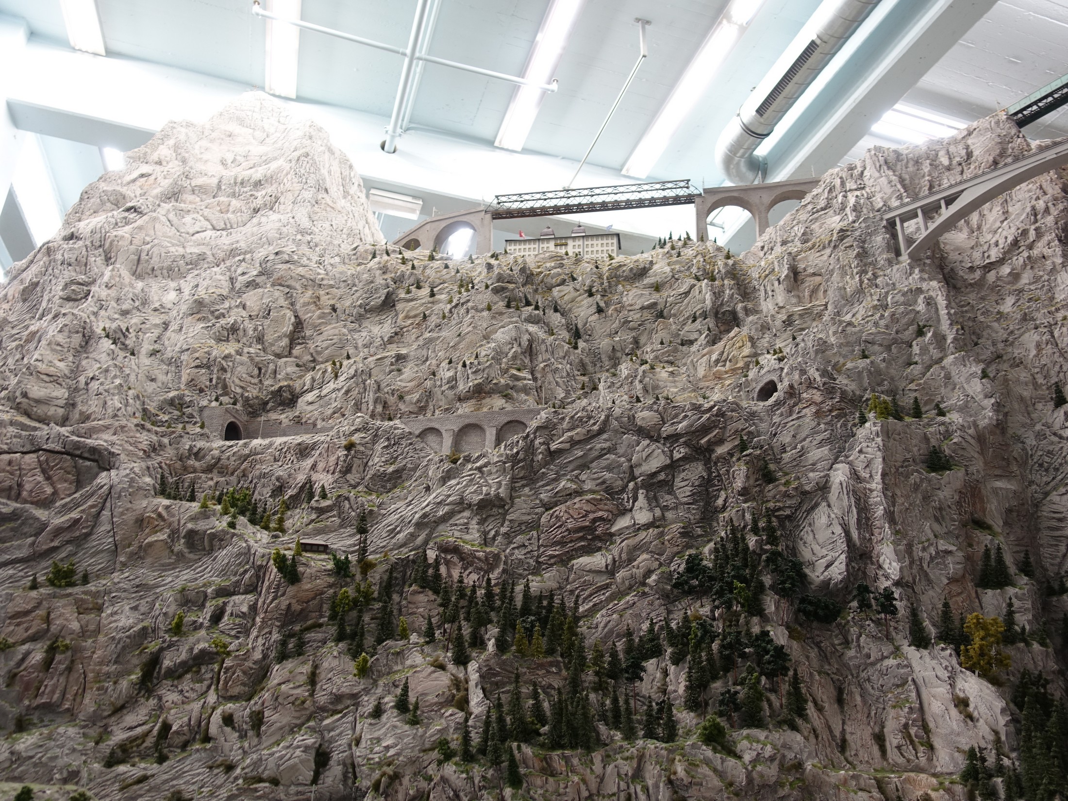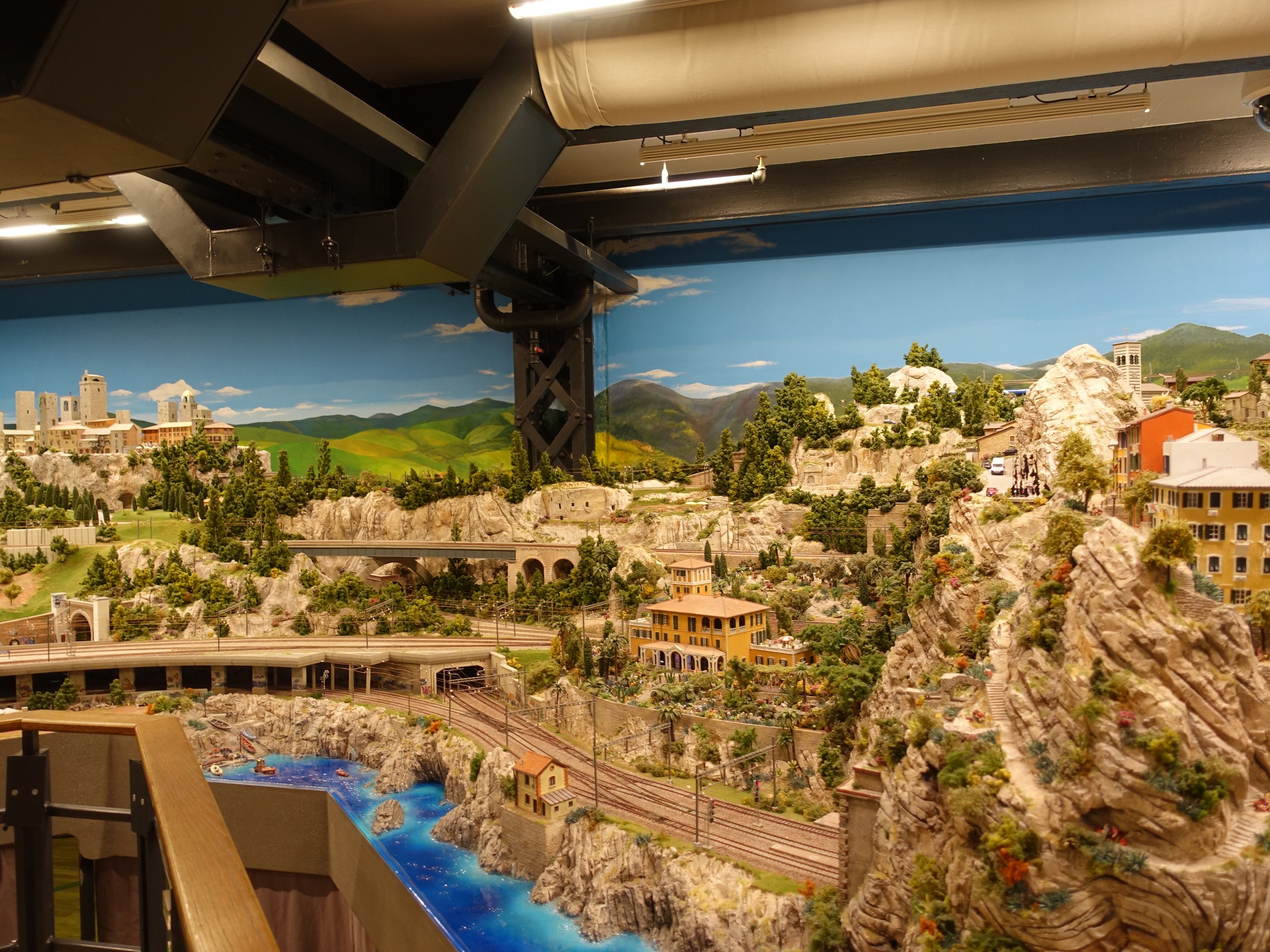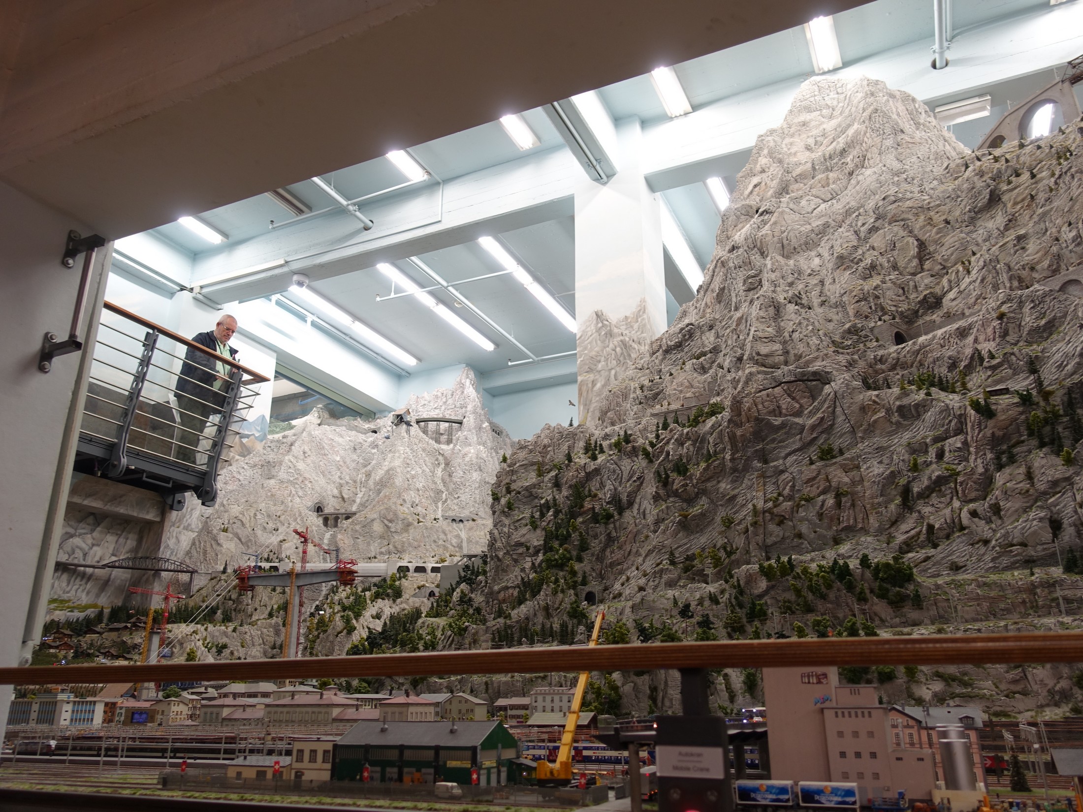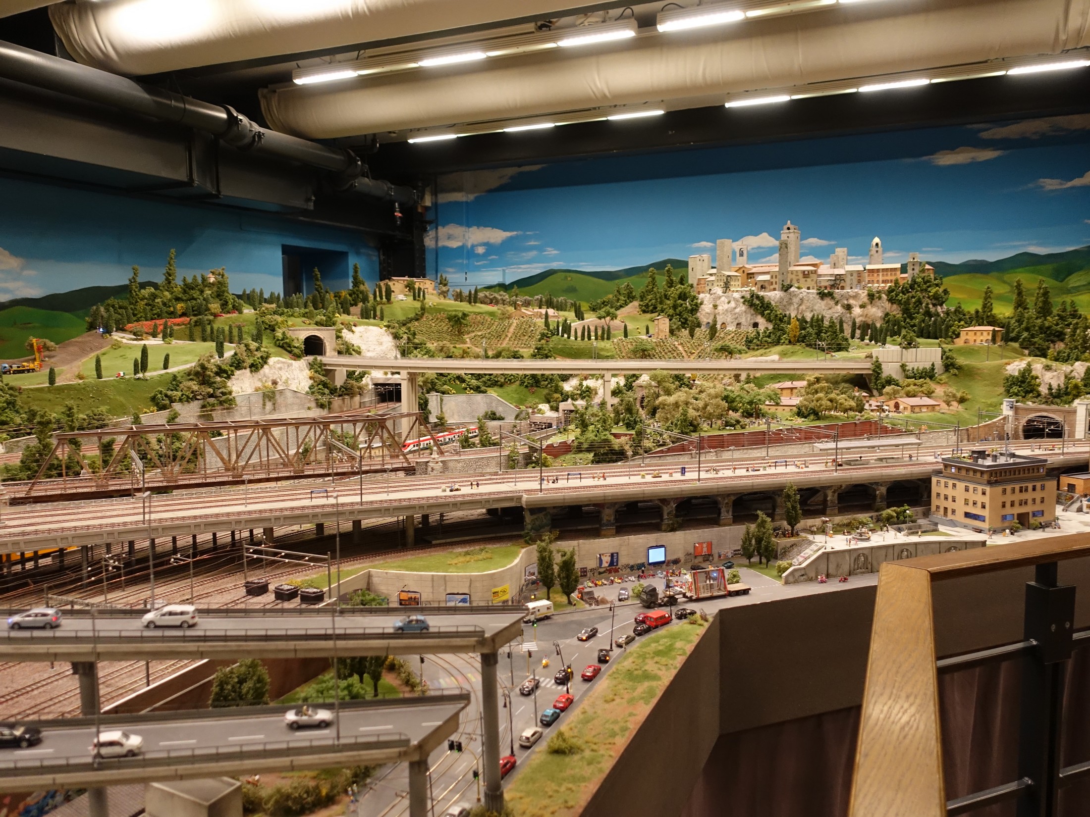 Co se týká modelové železnice, tak ta je bohužel v provozu jen v určité časy a nám to bohužel nevyšlo příliš dobře (čekali by jsme přes hodinu), tak jsme ji v provozu neviděli. Ale i tak je možné si modelovou železnici prohlédnout za skleněnými zdmi. Jedná se o modely ve větším měřítku než je H0, ale netroufám si odhadnout, co to bylo za měřítko. I proto modelová železnice působila trochu zvláštním dojmem a modely nebyly tak propracované, řekl bych, že to je spíše pro zábavu dětí, než dospělých modelářů.