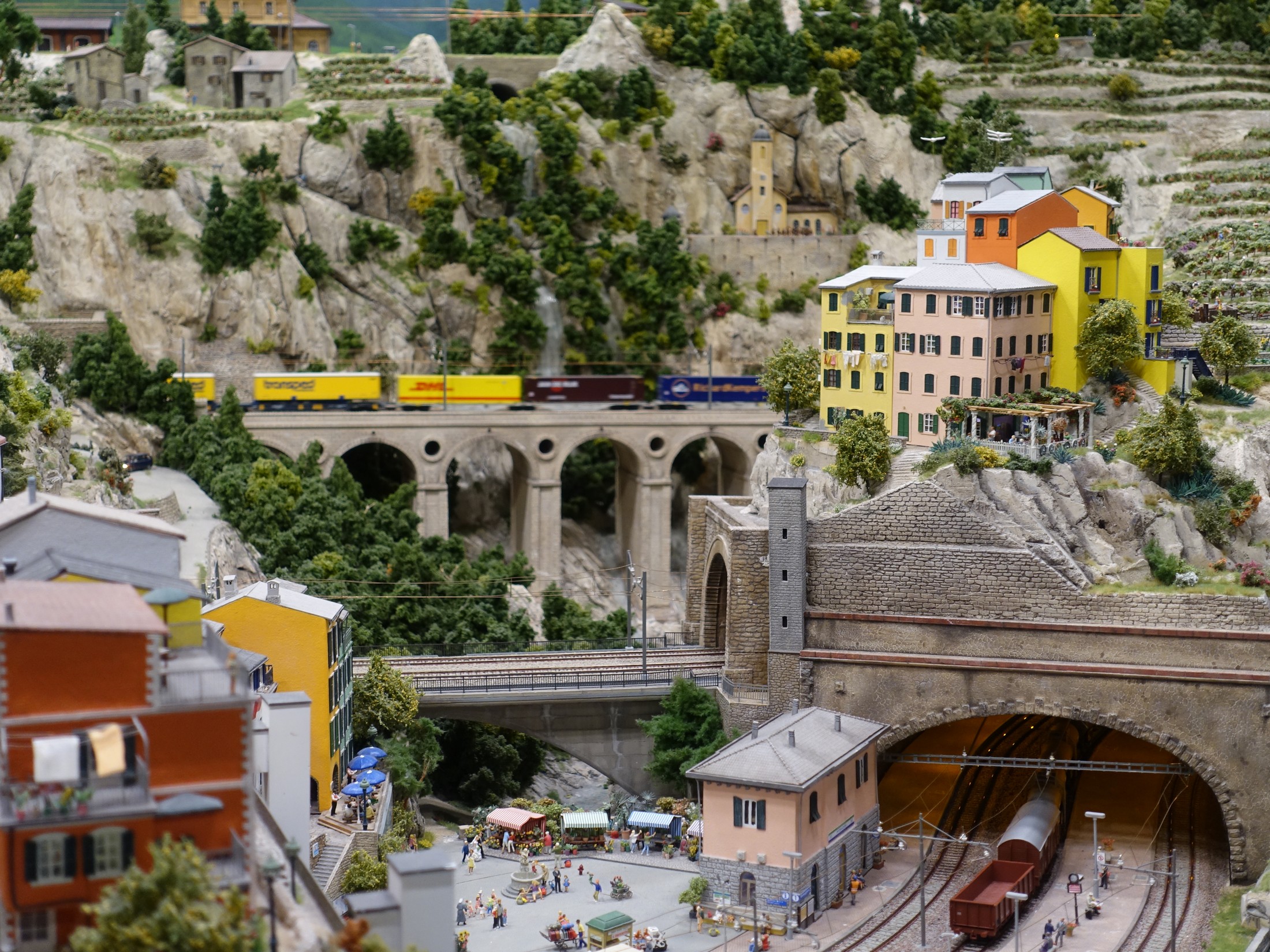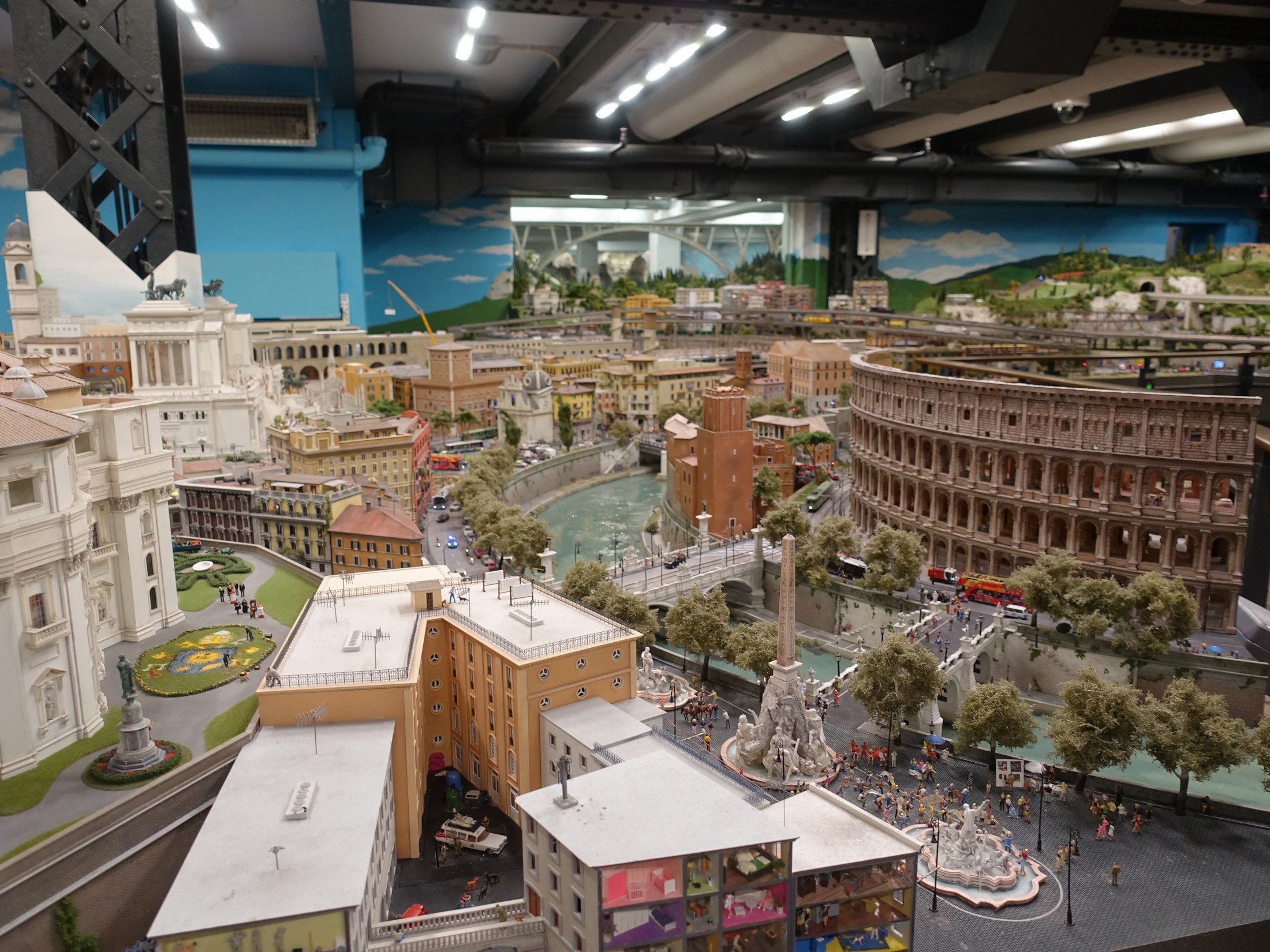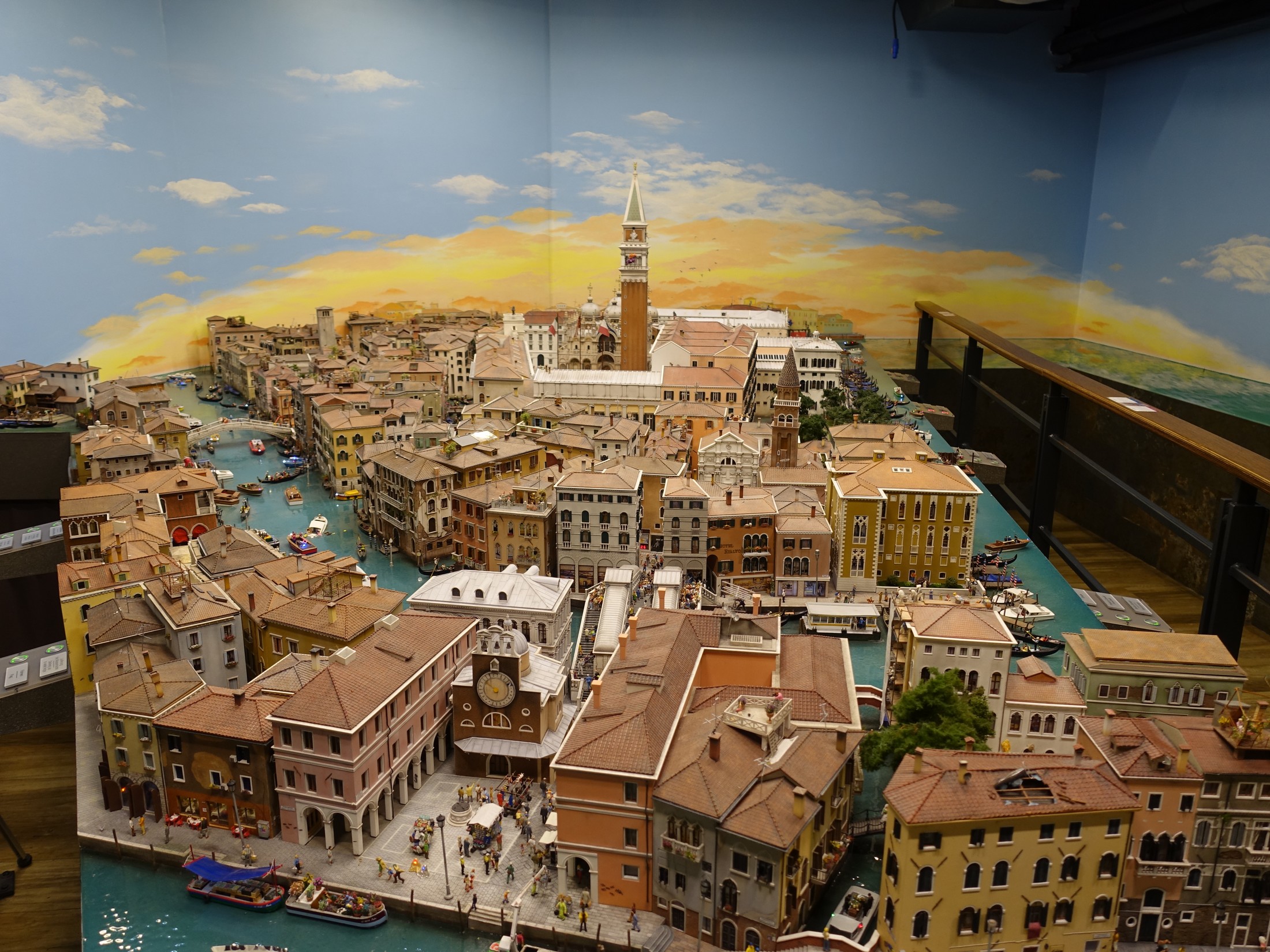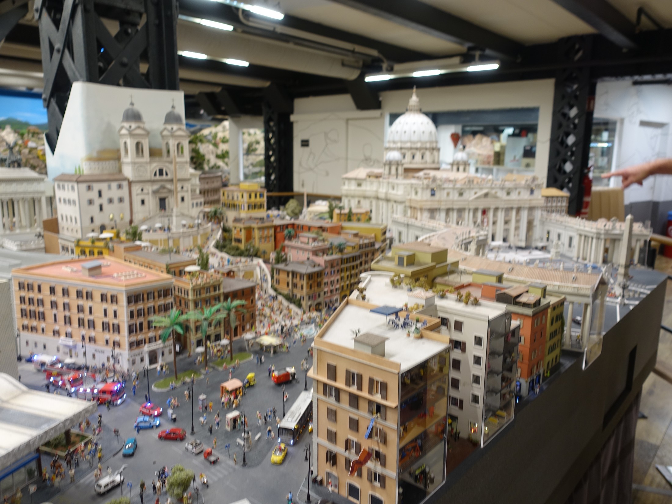 Co se týká modelové železnice, tak ta je bohužel v provozu jen v určité časy a nám to bohužel nevyšlo příliš dobře (čekali by jsme přes hodinu), tak jsme ji v provozu neviděli. Ale i tak je možné si modelovou železnici prohlédnout za skleněnými zdmi. Jedná se o modely ve větším měřítku než je H0, ale netroufám si odhadnout, co to bylo za měřítko. I proto modelová železnice působila trochu zvláštním dojmem a modely nebyly tak propracované, řekl bych, že to je spíše pro zábavu dětí, než dospělých modelářů.