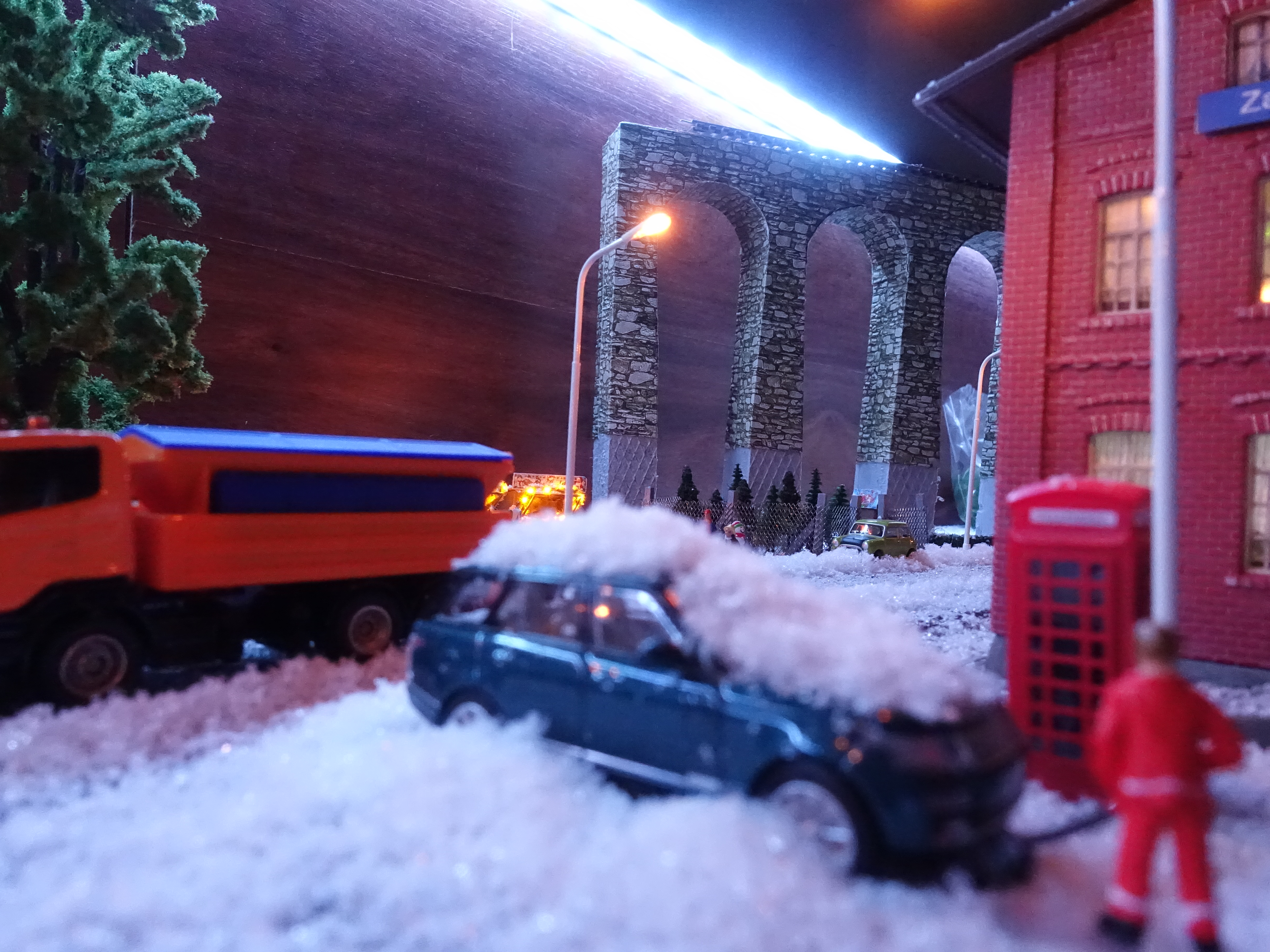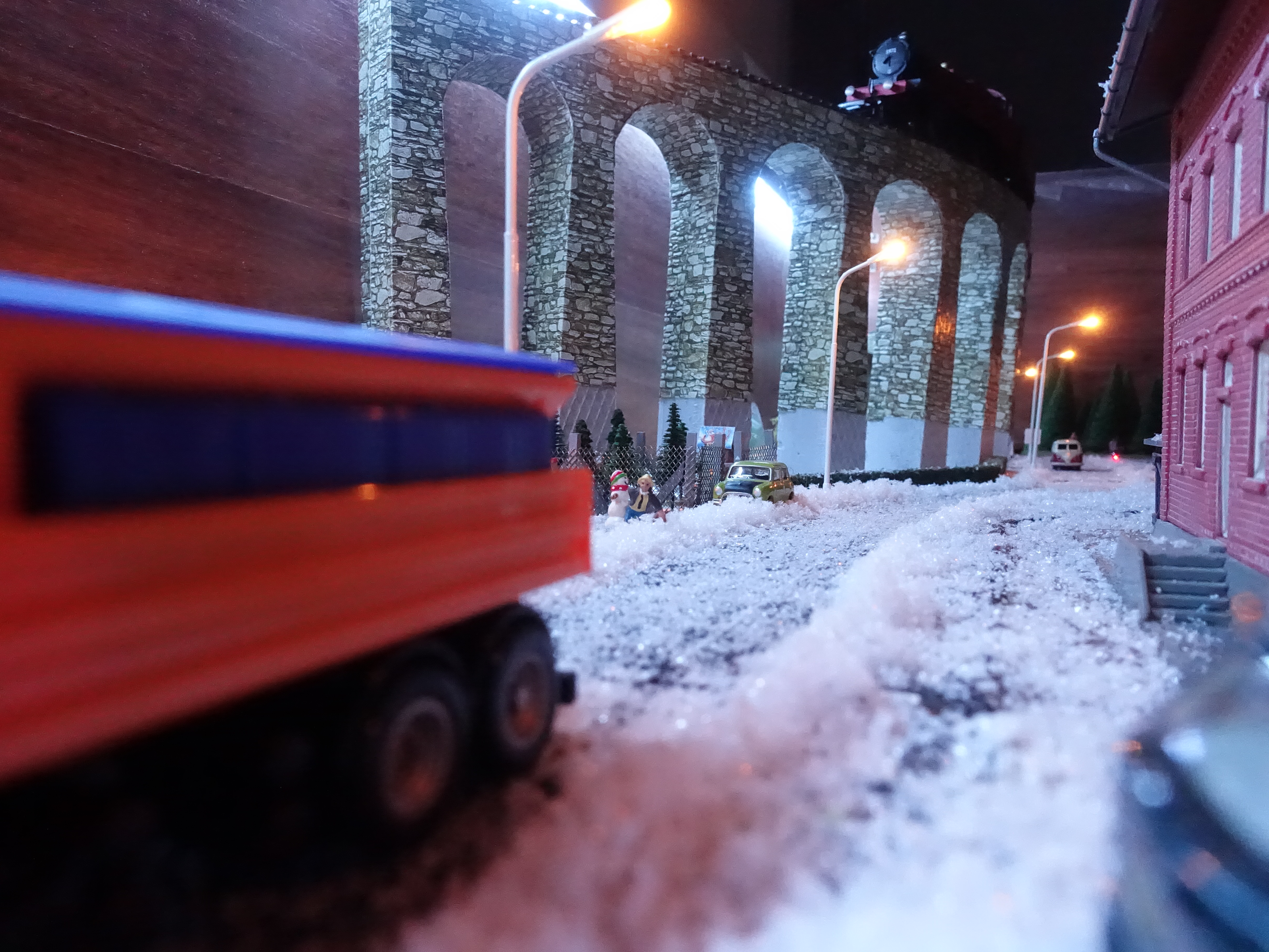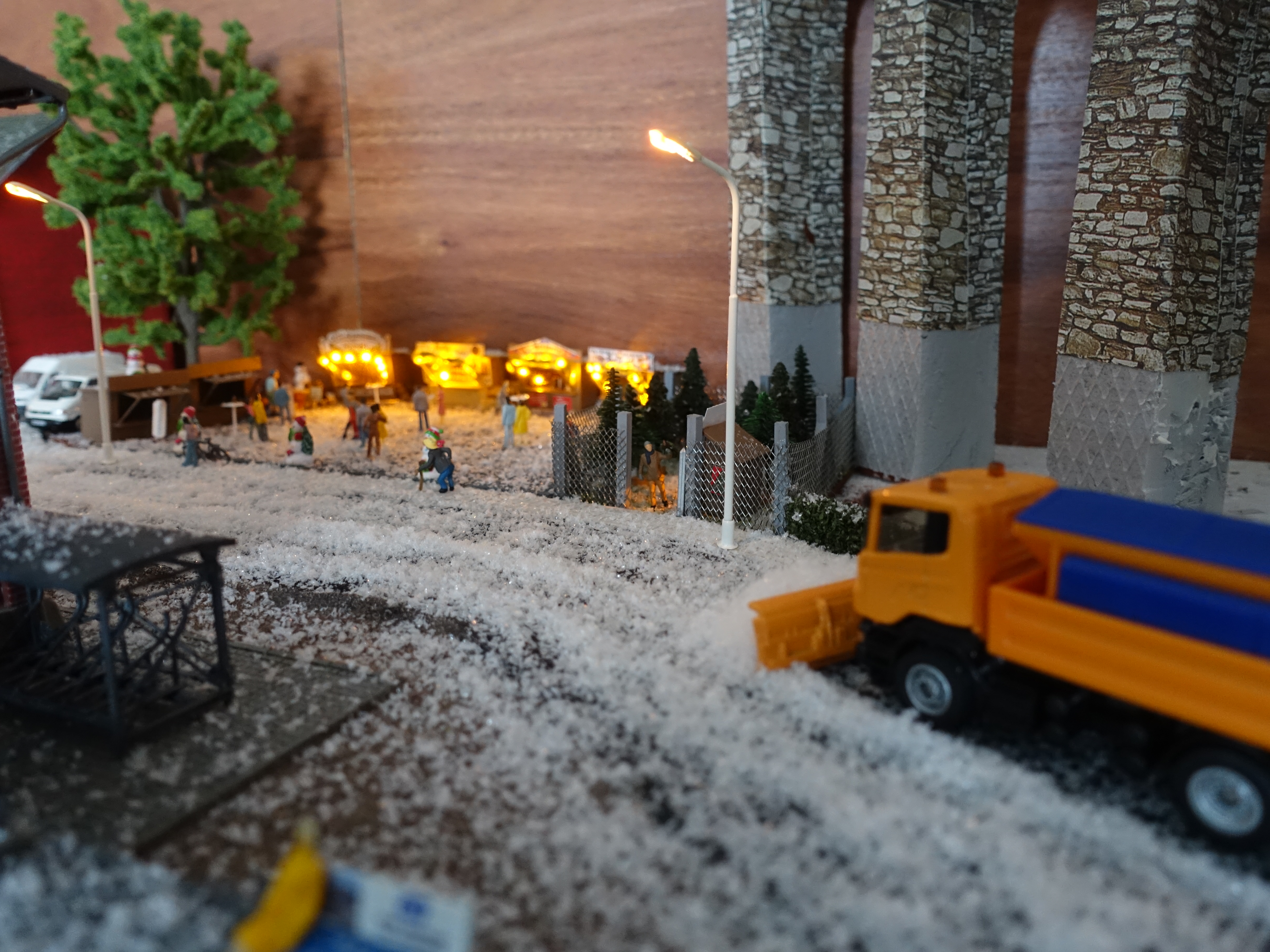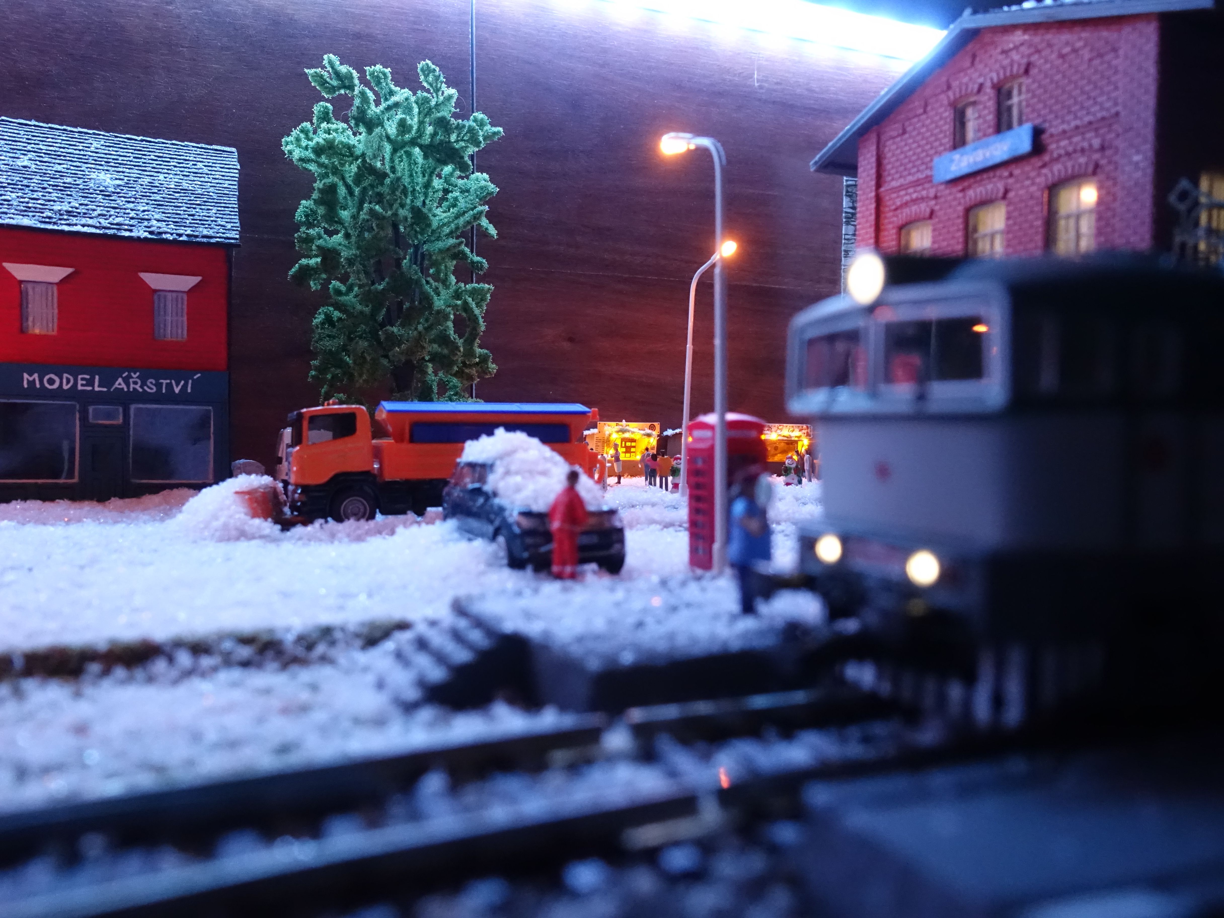 Model není jen statický, ale průběžně jej během prosince obměňuji a dělám pořád nové fotky (většinou na Instagram). Vše začalo přivezením vánočního stromečku a postavením na jeho obvyklé místo a poté přípravou vánočních trhů. Bylo potřeba přivézt zboží a také zahájit prodej vánočních stromečků. Jak to probíhalo se můžete podívat na následujícím videu.