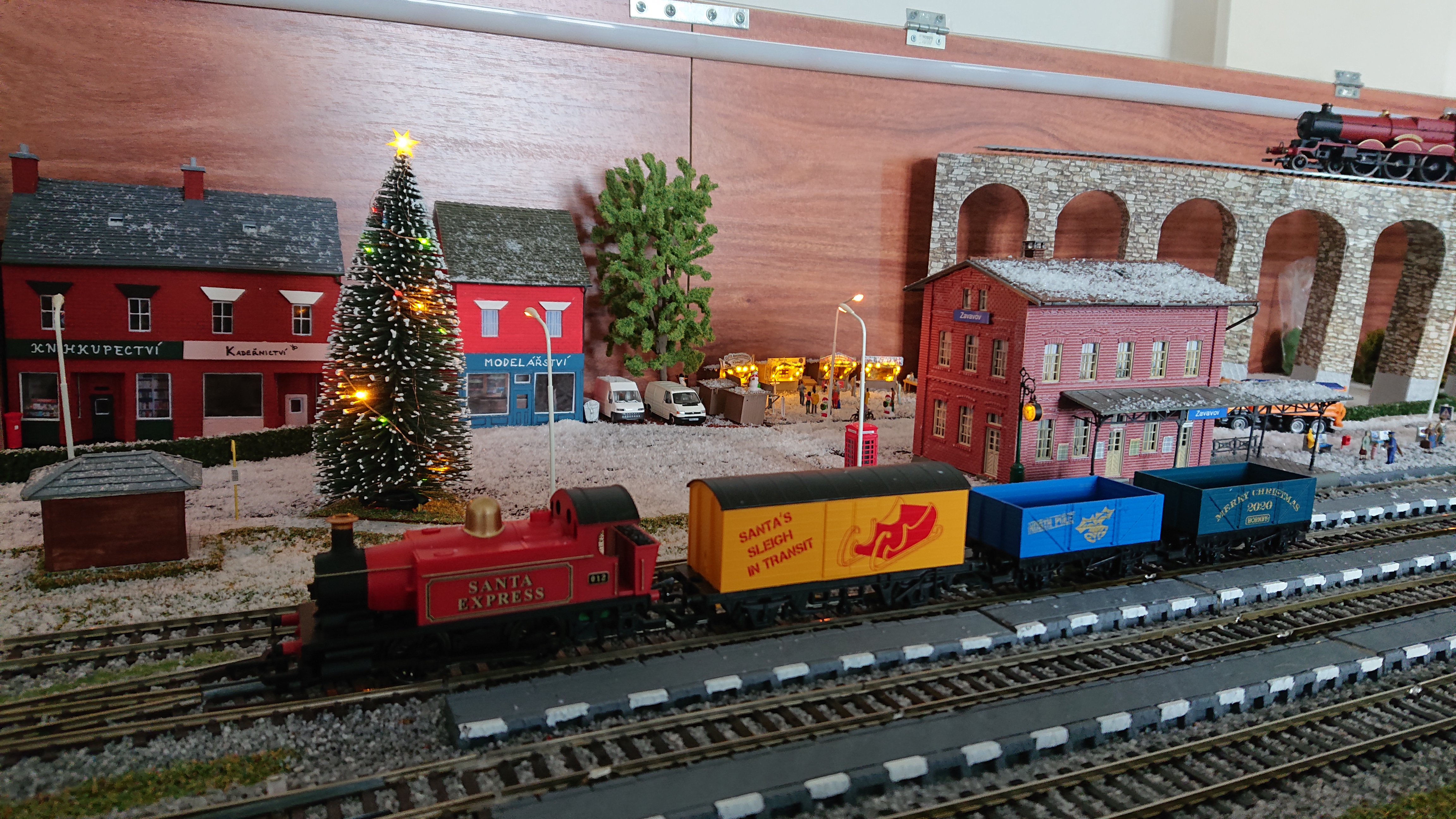 Každý rok se snažím na své modelové kolejiště přinést něco nového v období vánočních svátků a tak i letos je to zase trochu jiné. Kromě vánočního stromečku a vánočních trhů napadl letos zase i sníh. Ale to nejzásadnější je nový vlak Santův Express, který sice už mám od loňska, ale teprve letos dostal DCC dekodér, aby mohl jezdit i na mém kolejišti a také skvělé zvuky.