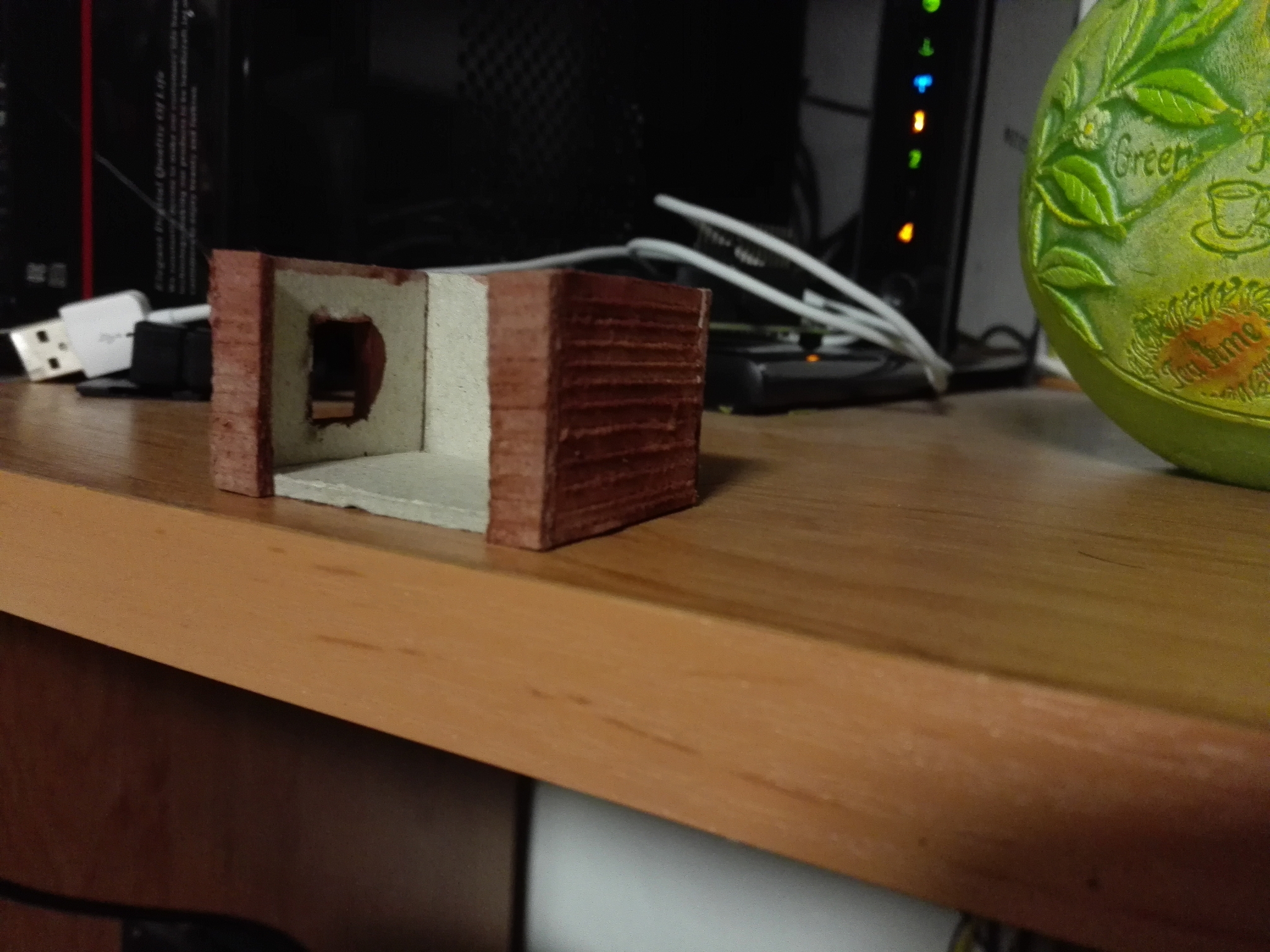 Pro nabarvení stěn jsem použil akrylovou barvu hnědou a zředil ji na některých místech vodou. Různé ředění na různých místech vytvoří zajímavý vzhled.